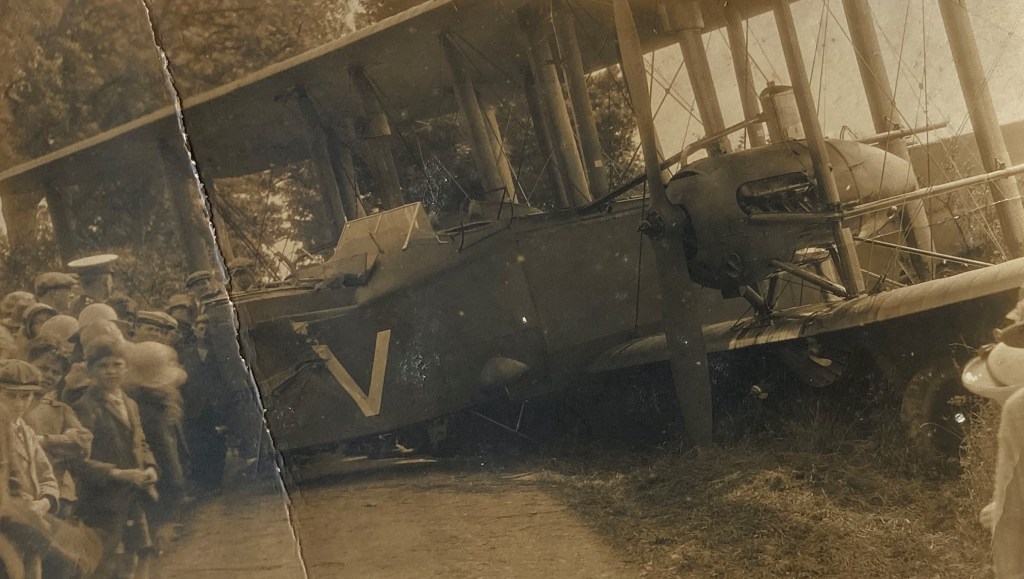 One of the Museum’s latest acquisitions is a fascinating postcard that shows the wreckage of a plane that crashed at Broadbridge Heath in 1927!
