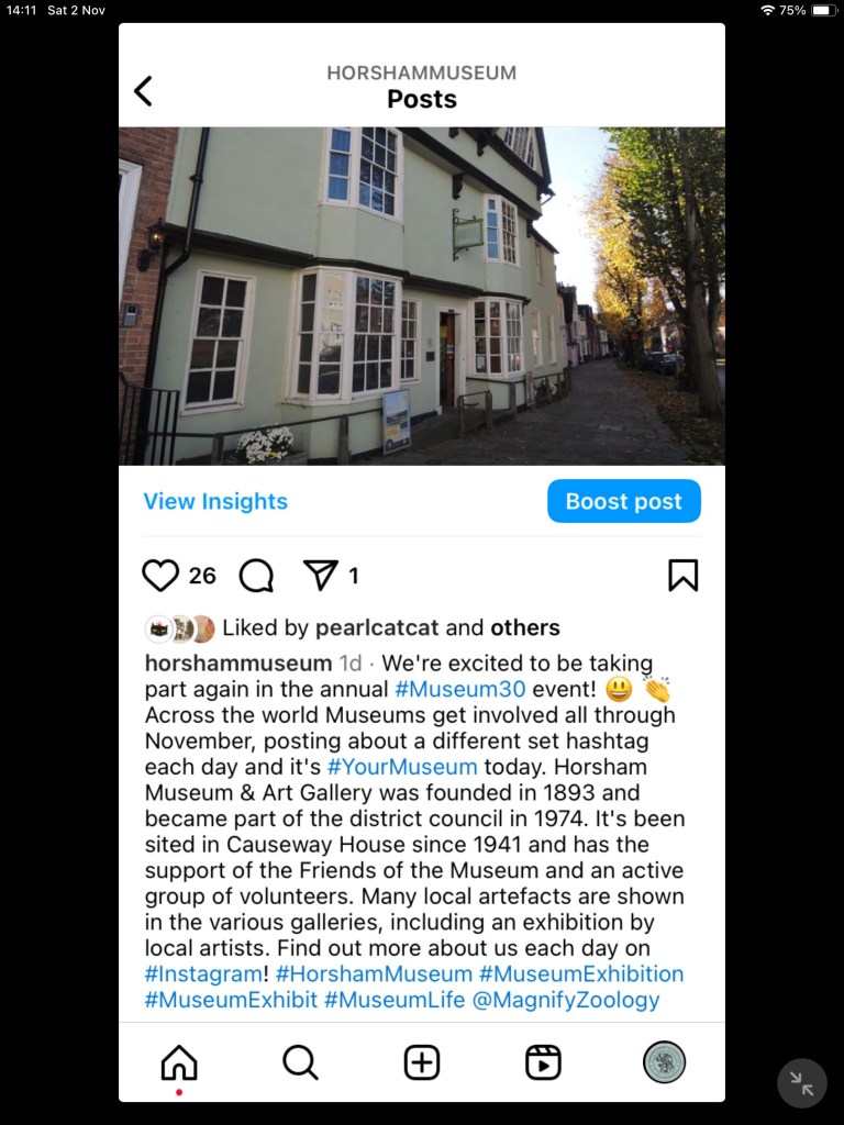 Horsham Museum & Art Gallery only posts these #Museum30 entries on Instagram as that is the most pictorial of the social media outlets.