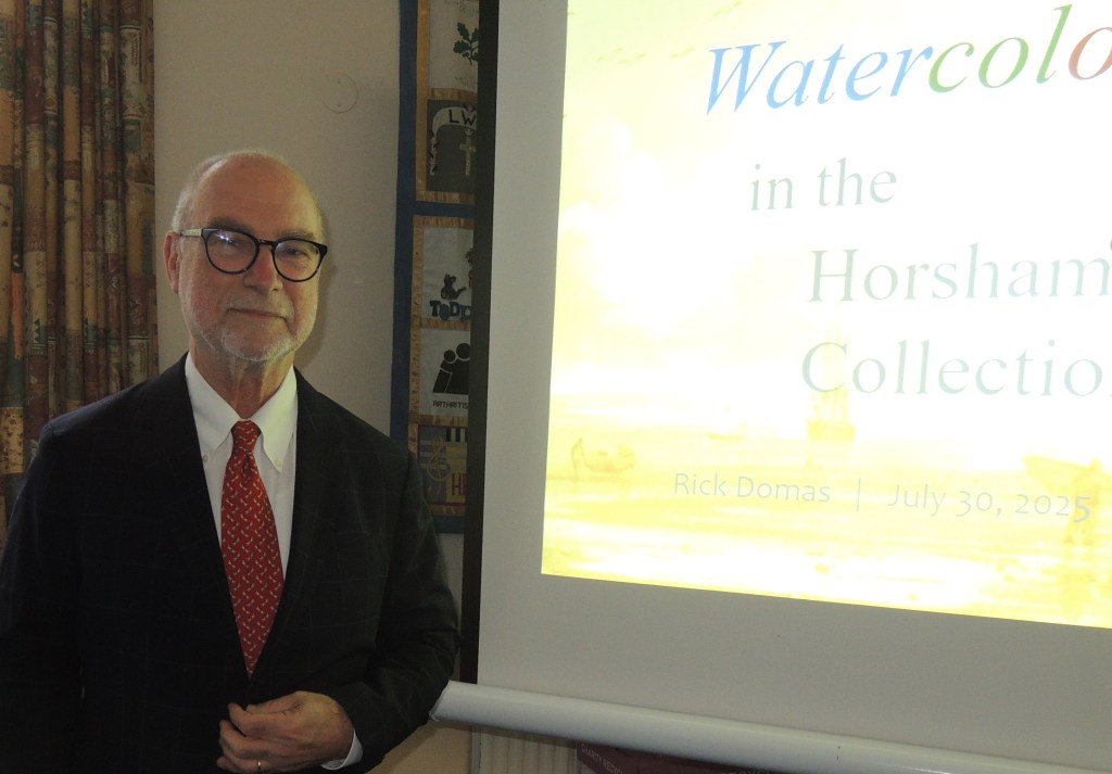 Rick Domas, Director of Kate Gallery in Horsham, gave a presentation entitled ‘Watercolours in the Horsham Museum Collection‘ on Wednesday, July 30, to the Friends of the Horsham Museum and others.