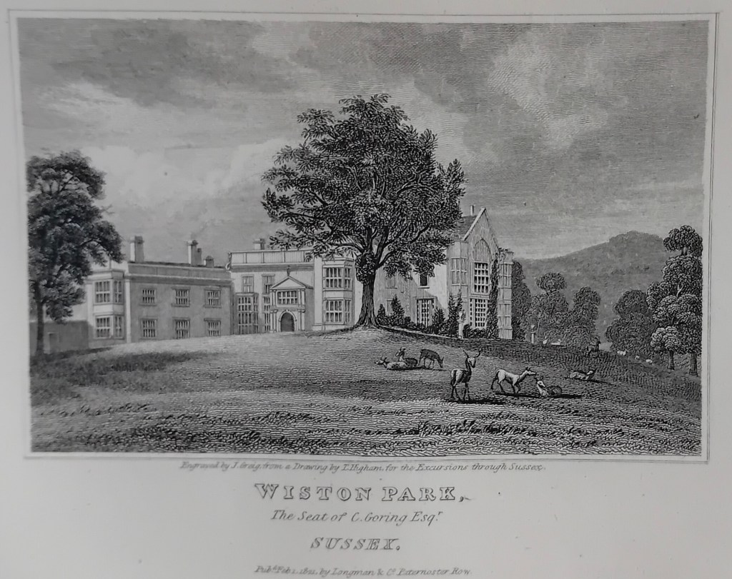 Although his income as vicar was modest, Goring oversaw a substantial estate, including Wiston House, its parkland, and surrounding farmland. Contemporary sources describe the house as a stately seat with ornamental grounds and a deer park, emphasizing that Goring’s social and economic standing derived from landholding rather than ecclesiastical position and stipend.