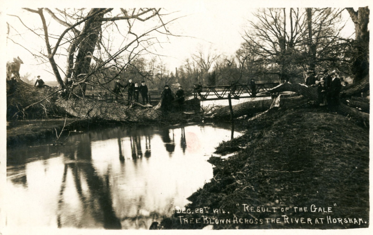 Another large tree, an elm, also blew down in Springfield Road at the entrance to Horsham Park and electric light was used to warn the traffic (‘ordinary lanterns were of no use in the gale’).