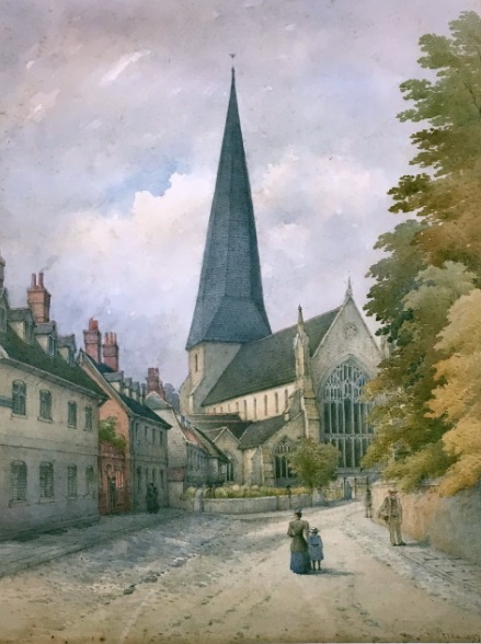 Horsham Museum & Art Gallery has five of his paintings (not currently on show), including the impressive 1897 work showing St Mary’s Church from Normandy, with the almshouses on the left.